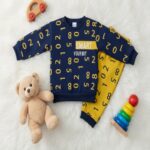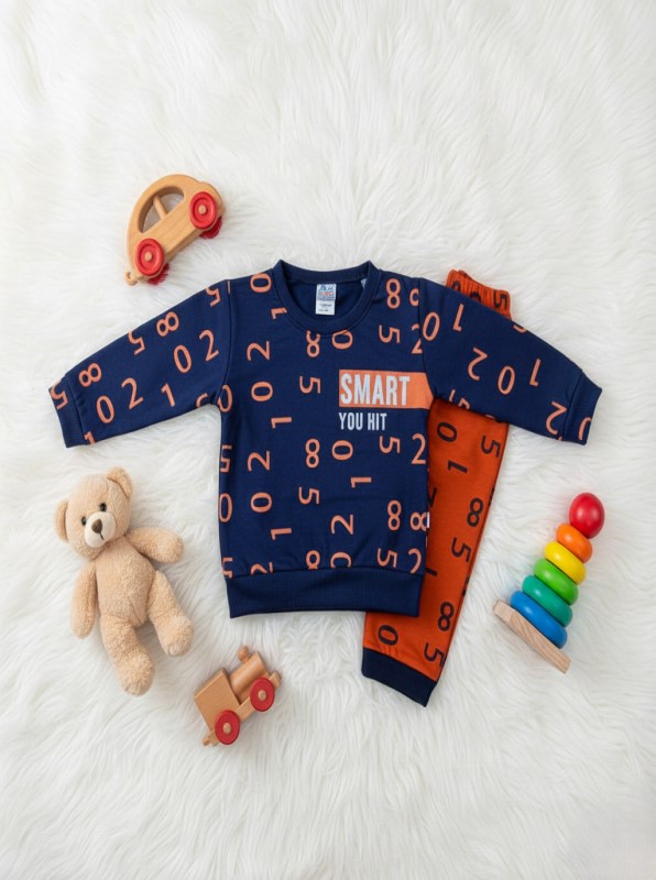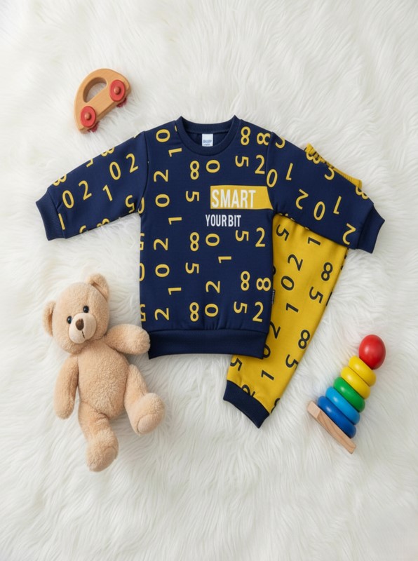 This is a vibrant and playful two-piece casual set for boys, featuring a bold all-over number print design.