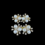 Elevate your hair game with these sophisticated floral-inspired clips. Each clip features a stunning cluster of luminous faux pearls arranged in a delicate blossom pattern, accented by shimmering rhinestones. Set on a polished gold-tone base, these clips add a touch of timeless glamour to any look. Comes as a matching pair, perfect for symmetrical styling.